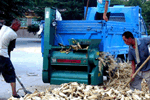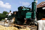 概述 該型玉米脫粒機(jī),是牽引拖車配套電啟動(dòng)柴油機(jī)使用,對帶皮玉米棒輔助喂料、剝皮脫粒、清選分離一次同時(shí)完成。